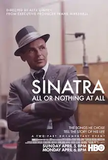 Sinatra: All or Nothing at All is an American documentary film that premiered in two parts on April 5 and 6, 2015 on HBO.[1][2][3]