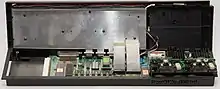 QDOS, a pre-emptive multitasking operating system primarily designed by Tony Tebby, is included on ROM, as is an advanced structured BASIC interpreter, named SuperBASIC designed by Jan Jones, which is also used as the command-line interpreter.[22] The QL is bundled with an office suite, consisting of a word processor, spreadsheet, database, and business graphics written by Psion.