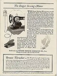 Singer also produced many attachments specifically for their own machines "which will enable you to accomplish a great variety of work with a minimum of time and effort... attachments which can give your home sewing that smart professional look."[34]