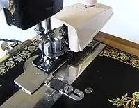 Singer separately sold a hemstitching attachment that is compatible with 27-series machines. The original version is a passive device, Singer part number 28915.[35] Later, a more sophisticated needle-clamp-powered attachment was offered—Singer part number 121387.