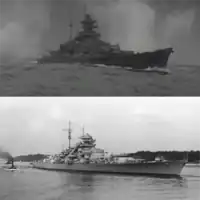 Sink the Bismarck! was made before 1975, when the British code-breaking at Bletchley Park was declassified, so it did not reveal that Shepard's hunches about the movements of the Bismarck were supported by intelligence. Direction finding and traffic analysis showed that on 25 May, Bismarck stopped talking to Wilhelmshaven and resumed with Paris, and Shepard committed to the belief that Bismarck was headed for the French coast. The radio switch from Wilhelmshaven to Paris might have been caused by Bismarck crossing the line between southern Greenland and the northern Hebrides, which placed her under Group West instead of Group North.[28] Nonetheless, Shepard's hunch was proved correct when, by good luck, a Luftwaffe Enigma transmission was intercepted and decoded at Bletchley Park, revealing that Bismarck was headed for Brest to repair an oil leak. The Luftwaffe's Enigma code had been broken early in the war, unlike the German naval Enigma code, which was only broken later and was subject only to traffic analysis during the Bismarck pursuit.[29] Damage during her battle with HMS Hood and HMS Prince of Wales caused flooding that put Bismarck's bow barely above sea level. Oil slicks caused by hits from HMS Prince of Wales were apparent. In the film, Bismarck's bow remains at its normal height above sea level.