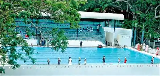 A swimming pool was a long felt need[18] of the Sirimavians. Many problems arose in attending training sessions in other pools specially transport problems and supervision. As such a strong request was made by the students to commence work on a school swimming pool. As a result, the foundation for the school swimming pool was laid in October 2006. Many projects were launched to raise funds for the project.[19] Swimming pool project was completed in 2 years time and that was considered as an achievement. Swimming Pool caters to the long felt need of the Sirimavians and foster the advancements in the sphere of sports.