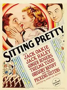 Sitting Pretty is a 1933 American Pre-Code musical comedy film that tells the story of two aspiring but untalented songwriters played by Jack Oakie and Jack Haley. They are joined by Ginger Rogers and Thelma Todd on their trip from New York City to Hollywood to find their fortune. This film was directed by Harry Joe Brown and featured the Pickens Sisters as themselves.[1]