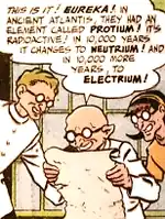 Doctor Sivana's intelligence is so great that it borders on a superhuman level. He has mastered all scientific and technological disciplines, as well as knowledge of various ancient myths, legends, and cultures.[37] Sivana once discovered a mathematical formula which, when recited, allows him to walk through solid objects, thus making himself almost untouchable. Until, Captain Marvel supplies a new metallic element known as Marvelium to design an inescapable prison cell for Doctor Sivana (in his non-corporeal form) and contain him.[38]