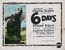 Six Days is a 1923 American silent drama film directed by Charles Brabin and starring Corinne Griffith, Frank Mayo and Myrtle Stedman.[1] It is based on a novel of the same title by Elinor Glyn.