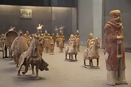 The earliest grottoes in the Mogao Caves of Dunhuang were carved in the Former Qin. Work on the Maijishan Grottoes began during the Later Qin. The Bingling Grottoes were started during the Western Qin. Numerous other grottoes were built in the Hexi Corridor under the Northern Liang.