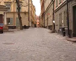 - 1 2 3 "Innerstaden: Gamla stan". Stockholms gatunamn (2nd ed.). Stockholm: Kommittén för Stockholmsforskning. 1992. p. 68. ISBN 91-7031-042-4.