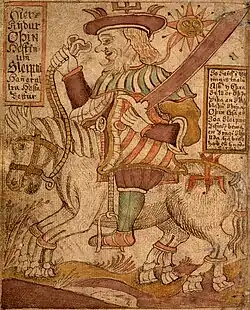 Skáldskaparmál (Old Norse: 'Poetic Diction' or 'The Language of Poetry';[1] Old Norse pronunciation: [ˈskaldskaparˌmɒːl]; Icelandic pronunciation: [ˈskaultˌskaːparˌmauːl̥]) is the second part of the Prose Edda, compiled by Snorri Sturluson. It consists of a dialogue between Ægir, the divine personification of the sea, and Bragi, the god of poetry, in which both stories of the Æsir and discourse on the nature of poetry are intertwined. The work additionally includes tales of human heroes and kings. The overarching mythological setup gradually fades and the work becomes more of an early form of a poetic thesaurus of Old Norse, presumably intended for usage by skalds (Norse poets and bards of the era). Much of the work is focused on poetic phrases and descriptors. The origin of these kennings is given; Bragi delivers a systematic list of kennings for various Æsir, people, places, and things. He then goes on to discuss poetic language in some detail, in particular heiti, essentially poetic synonyms or alternate words. For example, the simple hestr, "horse", might be replaced by jór, "steed".