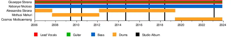 Upon their return, the band was interviewed by Mark Tutton,[3] where Giuseppe Sbrana discussed the expansion, and interest in the African metal scene. In 2019, Sbrana would leave the band for a second time. Her replacement was Cosmos Modisaemang.