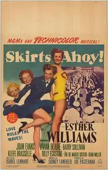 Skirts Ahoy! is a 1952 musical film directed by Sidney Lanfield, and starring Esther Williams, Vivian Blaine and Joan Evans. Shot in Technicolor,[2] the film follows several women who join the WAVES with sequences filmed on location at the Great Lakes Naval Training Station. It also features the film debut of Billy Eckstine.