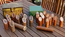 - ↑ Menvielle, Claude (2009). "The French Nine Pin Skittles Game". Castelnau-Chalosse, France: Comité Sportif National Quilles de 9 de la FFBSQ. Retrieved 2009-06-18. (in English and French)