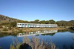 Construction commenced in October 1984, with tunnelling beginning in June 1985.[3] The 3.3 km Bilston Tunnel was constructed using a 5.5-metre (18 ft) tunnel boring machine, while the 2.6 kilometre Blue Cow tunnel was constructed using the traditional "drill and blast" method.[4] A consortium of Swiss and Australian companies (SLM, BBC, and Comeng[5]) provided the rolling stock, overhead wiring, sub-stations, communications and signalling. The 5.9 kilometre line opened from Bullocks Flat to Perisher on 26 July 1987 with the entire line opened through to Blue Cow on 31 March 1988.[6][7][8]