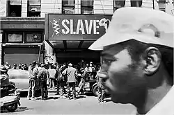 In 1984, Brooklyn civil court judge John Phillips[1] bought and renamed the Regent Theater (built in 1910[2]). He had produced an interracial romance film Hands Across Two Continents and couldn't convince theaters to screen it, so he bought two theaters in Brooklyn to have the movie played.[3] He renamed the Regent Theater the Slave Theater because, according to the website Brownstoner, he wanted to "remind everyone in the community, including himself, where they came from. He didn’t particularly care that many in that community were offended by the name, either".[1] In response to in Queens later in the 1980s , Judge Phillips opened the theater as a space for the local Black community and civil rights work; Al Sharpton started holding weekly rallies at the theater,[4] which he cites as a reason for increased civil rights organizing in Brooklyn at the time.[5] For example, the Slave Theater was a gathering point for marches (and speeches by Al Sharpton and C. Vernon Mason) following the acquittal of John Vento and Keith Mondello for the murder of Yusef Hawkins in August of 1989.[6][7]