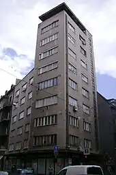 Löwy realized his most important achievement in 1933, the nine floors skyscraper in Masarykova street, which will be called the "first skyscraper of Zagreb".[3] He moved his architectural studio, in 1934, at the top floor of that same skyscraper, in Masarykova street, that he designed.[3] From 1934 until 1941 Löwy implemented a number of major housing and business establishments in Zagreb, which belong to the very top of Croatian modernism.