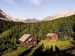 The Slide Lake-Otatso Creek Patrol Cabin and Woodshed in Glacier National Park are a small group of rustic buildings in the park's backcountry. Built in 1936, the patrol cabin is a frame building, unlike the more typical log patrol cabins found throughout the park. The similar woodshed is nearby.[2][3] The cabin's proximity to the Alpine-themed Many Glacier Hotel may have influenced the decorative detailing, which is unique in Glacier. The only other frame patrol cabin is the Fielding Cabin, in the southern part of the park. The cabin was completely reconstructed in the 1980s "to thwart a particularly aggressive pack rat population".[4] The buildings are located along Otatso Creek, 1.25 miles (2.01 km) downstream from Slide Lake.