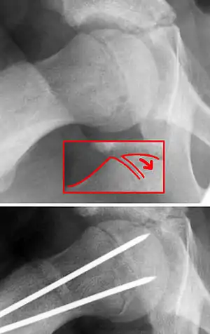 {{cite book}}: CS1 maint: multiple names: authors list (link) - ↑ Johns, Mabrouk, Tavarez (2022). Slipped Capital Femoral Epiphysis. StatPearls Publishing LLC.