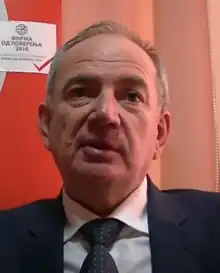 He served as the vice president of the People's Peasant Party until 2013, when he founded the Russian Party with the goal of establishing even closer connections of Serbia and the Russian Federation. The party advocates Serbia's entry into the Eurasian Economic Union, and the full membership of Serbia in the Collective Security Treaty Organization.[2] The party also advocates increasing cooperation with the Russian Federation in the field of economy, culture and education.[3]