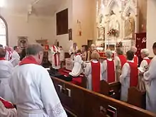 The Slovak Zion Synod is a group of 20 Lutheran congregations and one of the 65 synods that make up the Evangelical Lutheran Church in America. It is the only non-geographic synod in the ELCA, the only ELCA synod to have a congregation in Canada, and the only synod defined by its mission and outreach, instead of geography.[2][3] The synod was founded by Slovak immigrants in 1919 as the Slovak Evangelical Lutheran Zion Synod and joined with the United Lutheran Church in America, remaining as a separate synod in that denomination.[4] The policy continued when the ULCA merged into the Lutheran Church in America (1962) and later the ELCA (1988).