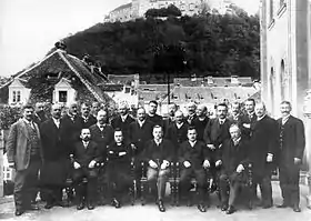 Representatives of the Slovene People's Party in the Provincial Diet of Carniola shortly before World War I. The party's president Ivan Šušteršič sits in the middle.