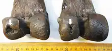 - ↑ Schmökel, Hugo; Farrell, Aisling; Balisi, Mairin F. (2023). "Subchondral defects resembling osteochondrosis dissecans in joint surfaces of the extinct saber-toothed cat Smilodon fatalis and dire wolf Aenocyon dirus". PLOS ONE. 18 (7): e0287656. Bibcode:2023PLoSO..1887656S. doi:10.1371/journal.pone.0287656. PMC 10337945. PMID 37436967.