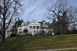 The Smith-Petersen House is a historic house at 32 Farlow Road in Newton, Massachusetts. Built in 1902, the two-story house is one of the city's finest Georgian Revival structures. The 2+12-story rectangular building has a hip roof and flanking two-story wings. Its main facade has a massive central Greek portico with two-story columns and a fully pedimented gable with an oculus window in its tympanum.[2]