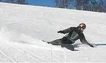 Sometimes called freecarving or hardbooting(due to the equipment used), this discipline usually takes place on hard packed snow or groomed runs(although it can be practiced in any and all conditions) and focuses on carving linked turns, much like surfing or longboarding, and is seen as superior to other disciplines in many Europeans countries. Little or no jumping takes place in this discipline. Alpine Snowboarding consists of a small portion of the general snowboard population, that has a well connected social community and its own specific board manufacturers, most situated in Europe. Alpine Snowboard equipment includes a ski-like hardshell boot and plate binding system with a true directional snowboard that is stiffer and narrower to manage linking turns with greater forces and speed.[39] Shaped skis can thank these "freecarve" snowboards for the cutting-edge technology leading to their creation.[40] A skilled alpine snowboarder can link numerous turns into a run placing their body very close to the ground each turn, similar to a motocross turn or waterski carve. Depending on factors including stiffness, turning radius and personality this can be done slowly or fast. Carvers make perfect half-circles out of each turn, changing edges when the snowboard is perpendicular to the fall line and starting every turn on the downhill edge. Carving on a snowboard is like riding a roller coaster, because the board will lock into a turn radius and provide what feels like multiple Gs of acceleration.[41]