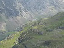 | Clogwyn | 53°05′03″N 4°04′49″W / 53.0841°N 4.0803°W | 2,556 ft (779 m) | Located on the exposed ridge and overlooks the Llanberis Pass and the Clogwyn Du'r Arddu cliffs, a popular climbing spot. |