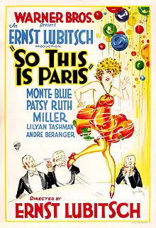 So This Is Paris is a 1926 American silent comedy film produced and distributed by Warner Bros. and directed by Ernst Lubitsch. It is based on the 1872 stage play Le Reveillon by Henri Meilhac and Ludovic Halévy. It stars Monte Blue and Patsy Ruth Miller. The film is preserved in many archival holdings including the Library of Congress and the Turner Entertainment Company.[2][3]