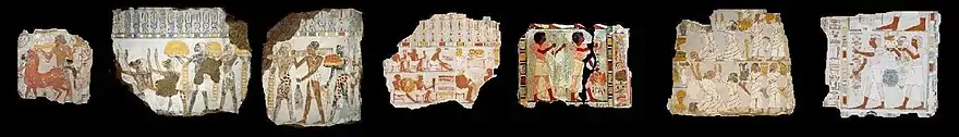 Sobekhotep was treasurer, but also mayor of Shedet, the capital of the Fayum. The latter title he was holding before being appointed to become a treasurer.[1] Sobekhotep was the son of the treasurer Min and followed him most likely directly in his office.[2] Sobekhotep is mainly known for his Theban tomb TT63. His wife Meryt was the nurse of the king's daughter Tiaa.[3] Her father is not known for sure, she either was the daughter of the mayor of the Faiyum Kapus[4] or the daughter of another Sobekhotep who was also mayor of Shedet.[3] His son was called Paser and was also mayor of Shedet. Otherwise, not much is known about him. He appears on a legal document that mentions also the Hathor temple at Gebelein and he is known from a statue.[5]