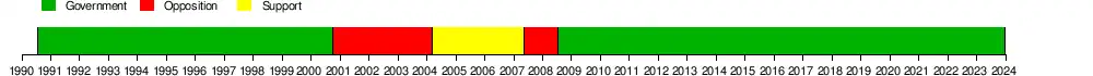 Year Leader Popular vote  % of popular vote # # of seats Seat change Coalition Status Ref.