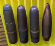 Jacketed flat point (JFP) may describe either soft-point or full metal jacket bullets with a flat, rather than a rounded front. Until recently, flat-point bullets were required in centerfire rifles with tubular magazines, such as Winchester rifles, where the rounds are stored front-to-back. Use of metal-pointed bullets in these rifles can be highly dangerous, as the point of the bullet will rest against the primer of the round in front of it and can cause a detonation under the force of recoil. Since late 2005,[3] newer bullet designs with polymer tips offering improved ballistics have become available for safe use in tubular magazine rifles.[4]