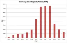 - ↑ "Electricity production from solar and wind in Germany in 2014 (German version)" (PDF). Germany: Fraunhofer Institute for Solar Energy Systems ISE. 5 January 2015. pp. 2, 3, 6. Retrieved 5 January 2015.