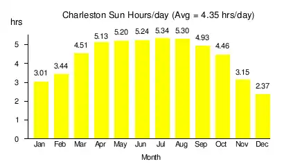 Solar power in West Virginia on rooftops can provide 23% of all electricity used in West Virginia from 6,300 MW of solar panels,[1] but West Virginia will be the last state in the United States to reach grid parity - the point where solar panels are cheaper than grid electricity - without incentives, due to the low cost of electricity - about $0.062/kWh. The point where grid parity is reached is a product of the average insolation and the average cost of electricity. At $0.062/kWh and 4.3 sun-hours/day, solar panels would need to come down to ~$1,850/kW installed to achieve grid parity. The first state in the US to achieve grid parity was Hawaii.[2] Solar power's favorable carbon footprint compared to fossil fuels is a major motivation for expanding renewable energy in the state,[3] especially when compared to coal to generate electrical power.[4]