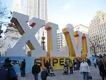 View of the monument from the southwest, with the Salesforce Tower in the background.