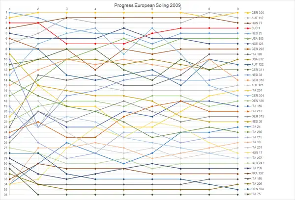 - ↑ "Soling European Championship" (ASCII). site-isaf.soticcloud.net. World Sailing. 31 July – 8 August 2009 [2009]. Retrieved 13 February 2022.
