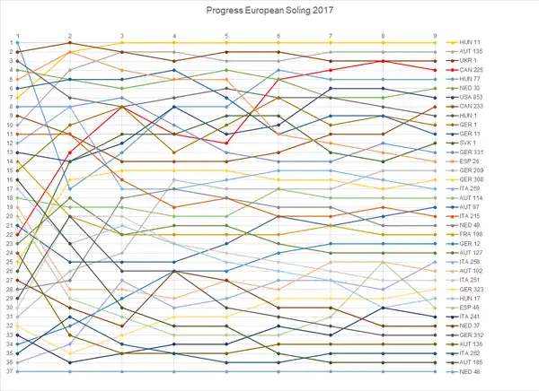 - ↑ "Soling European Championship" (ASCII). site-isaf.soticcloud.net. World Sailing. 13–17 July 2017 [2017]. Retrieved 23 February 2022.