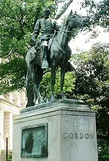 Borglum received several major public commissions, including an equestrian monument of General John Brown Gordon for the grounds of the Georgia State Capitol in Atlanta (1907), one of Rough Rider Buckey O'Neill for the plaza in front of the courthouse in Prescott, Arizona (1907), and The Pioneer, which was erected in the Court of Honor at the Panama–Pacific International Exposition in San Francisco (1915).