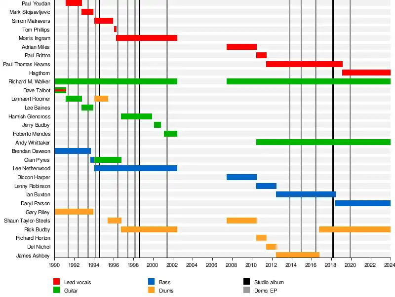 | Past members | Paul Bwitton Rick Budby Brendan Dawson Morris Ingram Simon Matravers Chaz Netherwood Tom Phillips Gian Pyres Gary Riley Lennaert Roomer Mark Stojsavljevic Hamish Glencross Shaun Taylor-Steels Lenny Robinson Paul Thomas Kearns |