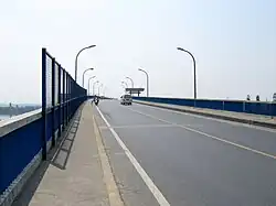 The Songpu Bridge is located between Chedun Town and Yexie Town in Songjiang District. It takes about 5 minutes to cross this 4-kilometer bridge. The bridge is divided into two layers. The upper road bridge is part of the 320 National Road Cheting Highway. The lower railway bridge was originally used for the Jinshan branch of the Shanghai-Hangzhou Railway. The railway line is a single line. The railway has been abandoned.[2][3][4]