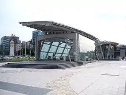The Taipei Metro Songshan Airport station is located in Songshan, Taipei, Taiwan. It is a station on Wenhu line and serves as a transportation gateway to Taipei Songshan Airport.