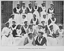 Sophia B. Jones became the first faculty member of African descent at Spelman College when she was hired in 1885.[10] While at Spelman, she organized the school's nurses training program and led their infirmary.[11]