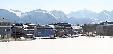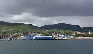ⓘ is a town and the administrative centre of Sortland Municipality in Nordland county, Norway. The town is located on the east coast of the island of Langøya, along the Sortlandsundet strait. In 1997, the municipality decided to declare "town status" for the urban area of Sortland. Sortland is the largest town and commercial centre in the whole Vesterålen region and is often referred to as "the blue town by the strait" (den blå byen ved sundet) since many of the buildings are painted blue.[3]