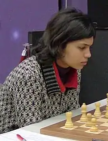 Soumya Swaminathan (born 1989) is a chess player holding the title of International Master (IM) and Woman Grandmaster (WGM) from India. She won the World Junior Girls' Championship 2009 held in Puerto Madryn, Argentina, edging out Deysi Cori and Betül Cemre Yıldız on tiebreak score.[1][2] She withdrew from the chess championships held in Iran in 2018 as a protest against the compulsory headscarf rule for women by Irans Islamic government.