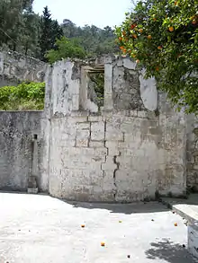 The Armenians retained control of Sourp Magar and its lands under Venetian and Ottoman rule. In the Ottoman Era, it was often called the Blue Monastery on account of the colour of the doors and windows. In 1642, at the time of Ibrahim I, the establishment was exempted from taxes. This exemption was renewed in 1660 and 1701.[4] Restoration work is recorded to have been undertaken in 1735 and again in 1814, when the larger of the two chapels was reconstructed.[5] Sourp Magar has, over its long history, served a wide range of social functions, from a school and rest-house for pilgrims to an orphanage and summer retreat for the Armenians of Nicosia. Some people lived on-site full-time, a report made in 1935 noting that 17 people resided there.[6] Sourp Magar once housed a collection of manuscripts and other sacred items, but these were re-located to the Holy See of Cilicia in 1947.[7] After the 1974 Turkish Invasion of Cyprus, the Armenian community could no longer maintain custodians at Sourp Magar and the complex fell into ruins. Armenians nonetheless retain great attachment to their ancient establishment. Thanks to the efforts of Armenian Cypriot MP Vartkes Mahdessian, three pilgrimages have been made there, the last of which took place on 9 May 2010.[8]