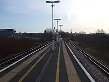 - ↑ Butt, R.V.J. (1995). The Directory of Railway Stations. Yeovil: Patrick Stephens Ltd. pp. 200, 215. ISBN 1-85260-508-1. R508.