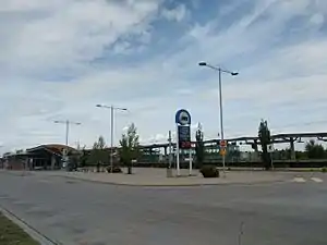The South Campus/Fort Edmonton Park Transit Centre is adjacent to the LRT station to the west. It has several amenities including public washrooms, a large shelter, a pay phone and vending machines. There is no drop-off area or park & ride.[9] The transit centre itself is not directly at Fort Edmonton Park; it is 4 kilometres (2.5 mi) driving distance from the attraction.[10]