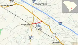 South Carolina Highway 173 (SC 173) is a 1.570-mile (2.527 km) primary state highway in the U.S. state of South Carolina. It serves to connect the town of Ridgeville with U.S. Route 78 (US 78). It is known as School Street for its entire length.