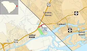 South Carolina Highway 179 (SC 179) is a 0.670-mile-long (1.078 km) primary state highway in the U.S. state of South Carolina. It travels from Little River to the North Carolina state line, near Calabash.