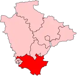 ![]() South Hams in Devon, showing boundaries used from 1983 to 1997. | |