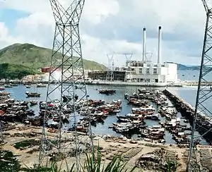 Prior to modern development, the land occupied by South Horizons was occupied by hillside and village houses, farmlands, and a sea bay.[10] It was acquired by Hongkong Electric in 1964,[11] and the Ap Lei Chau Power Station of Hongkong Electric and an adjoining oil depot of Shell Hong Kong Ltd were built subsequently.[10][12] The power station was in operation from 1968 to 1989. Its generators were relocated to Lamma Power Station,[13] while the operational headquarters of Hongkong Electric remained on the site. The Shell Oil Depot was in operation between 1970 and the late 1980s.[10][14] In 1973, failure of the foundations of the oil depot led to 3,600 metric tons of heavy marine diesel oil being released into Picnic Bay and Aberdeen Harbour.[15][16] Shell replaced its Ap Lei Chau depot, together with another one in Kwun Tong District (current site of Laguna City),[17] by a new site opened in 1991 on the south side of Tsing Yi.[18]